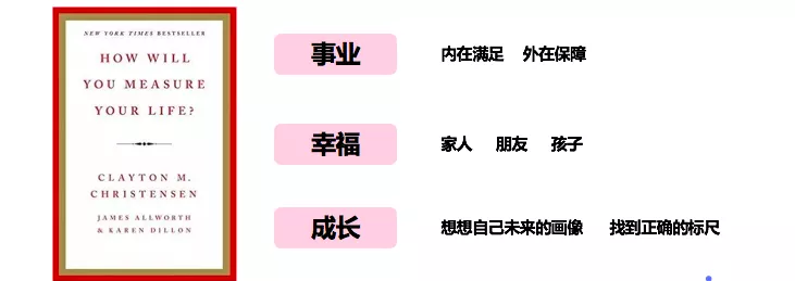 具体怎么衡量人生,可以看看这本书:《HOW WILL YOU MEASURE YOUR LIFE》。书里系统化地介绍了衡量人生的三个维度——事业、幸福和成长。事业最基本的是保障生活来源,更深层次的是能否满足你的内心诉求。幸福则更侧重稳定而有意义的关系,和家人、朋友的关系给予你长久的幸福感。