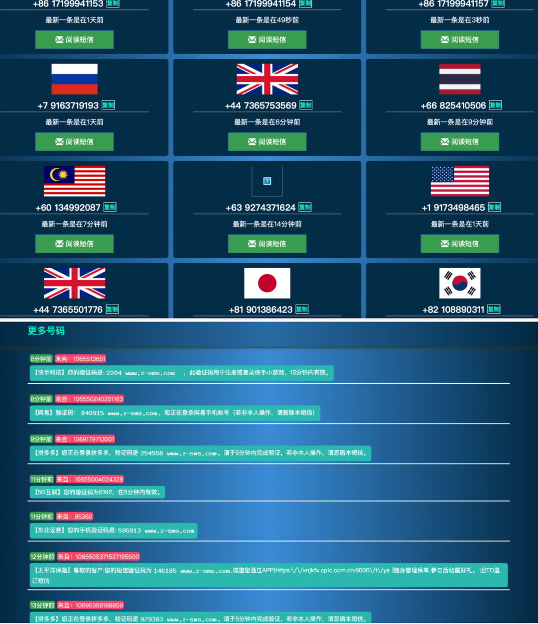 而且,他们不仅可以接国内业务,从下图中可以看到,接码平台提供的手机号不局限于国内,还有国外的,因为在国外市场上同样有需求。