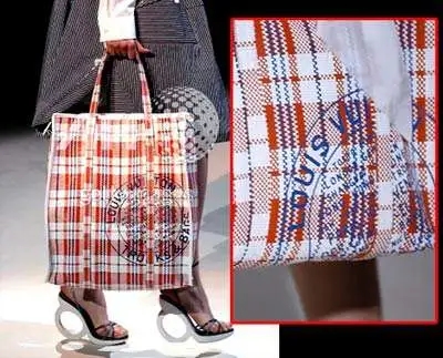 但视觉上给人的感觉并不土,让我想起了此前LV也出了一款编织袋的包包,当时就有网友评价,用这包去买菜绝了。