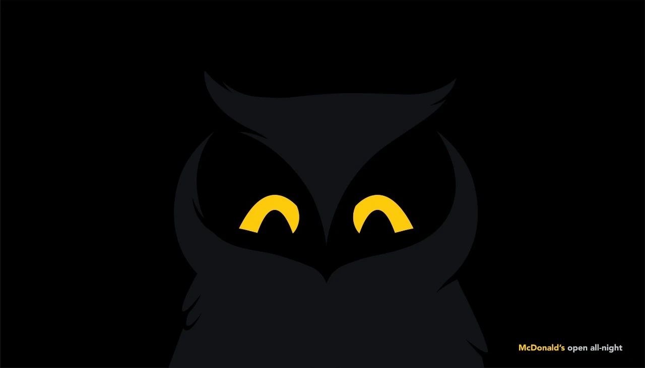 海报选取了三种夜行动物:浣熊、猫头鹰和蝙蝠,并巧妙地把麦当劳的logo设计成了这三种夜行动物发光的眼睛。用夜行动物来代表“夜猫子”,对于这个创意,头条君很服!
